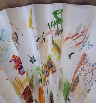 runner painted with acrylic paint stroke gestures and marker patterns are